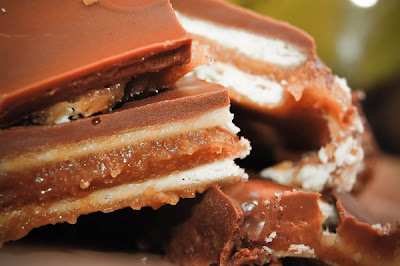 Bars Variation: If you don't have the time or patience to dip individual bars, you can make these into cookie squares instead. Spread the top of the caramel with the melted chocolate (you will probably use less of the chocolate, perhaps two-thirds of the original amount) and refrigerate it until set. Once firm, cut the pan into small squares to serve. Keep these candy squares refrigerated, otherwise the soft caramel will ooze out the sides and make a mess.
